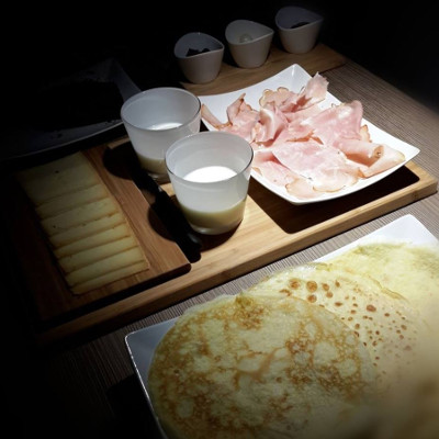 crêpes, yogurt, prosciutto e fontina crêpes, yogurt, ham and fontina